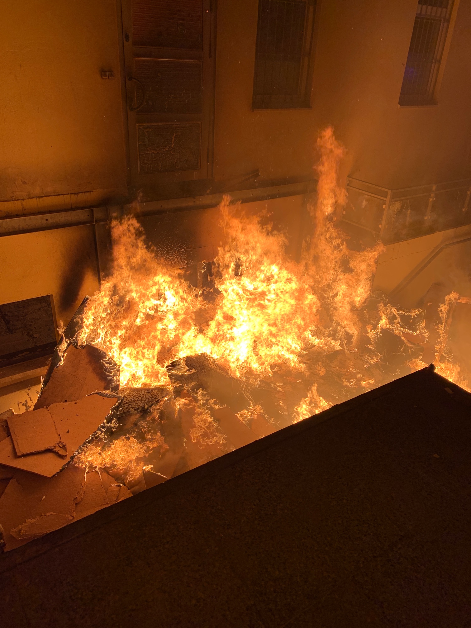Auf dem Dach des Gebäudes dürften nämlich keine Personen sein, da es in naher Zukunft abgerissen werden soll und derzeit wohl entkernt wird. Auf der Rückseite fanden die Polizisten dann bei einem Kellerniedergang im Bereich der ehemaligen Rezeption einen Haufen Presspappe, die glühte. Nach kurzer Zeit brannte diese Presspappe lichterloh, so dass sich die Bordfeuerlöscher des Funkwagens als wenig effektiv erwiesen. Die alarmierte Feuerwehr rückte mit drei Fahrzeugen an und löschte das Feuer. Die Ermittlungen zur Brandursache wurden aufgenommen. Nach bisherigen Erkenntnissen kann aber eine Selbstentzündung ausgeschlossen werden.